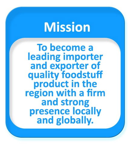 The Group’s business structure forms the tangible foundation of recurring business and provides a wider platform for continuous growth potential. Through the above strategic collaboration, the Group aims to further boost its position “To Become A Leading Importer And Exporter Of Quality Foodstuff Product In The Region With A Firm And Strong Presence Locally And Globally".